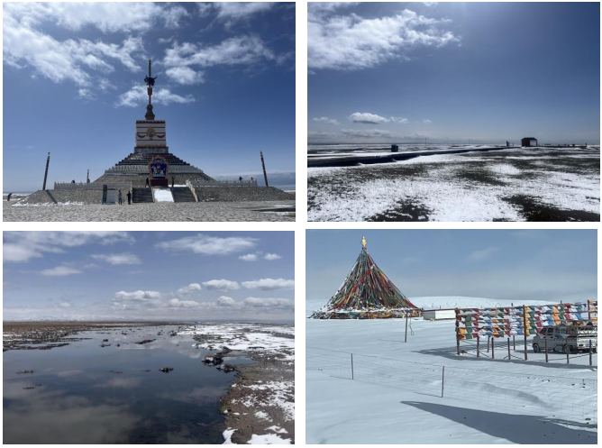 清晨起床室外已披上一層雪白外衣,天空漫漫白雪,悠然從春天又回到了冬天,大家都全副武裝前往今天的第一個景點仙女灣。仙女灣處于青海湖的北面,從另一個角度欣賞青海湖不一樣的美,這里不似昨日的廣闊湖面、聲聲浪濤,是草原、濕地、湖面的結合,仙境湖面倒映著整個天空,湖天一色蔚藍空靈,美的妙不可言,穿上美麗的衣服,站在上面凹造型,隨手一拍都是大片。